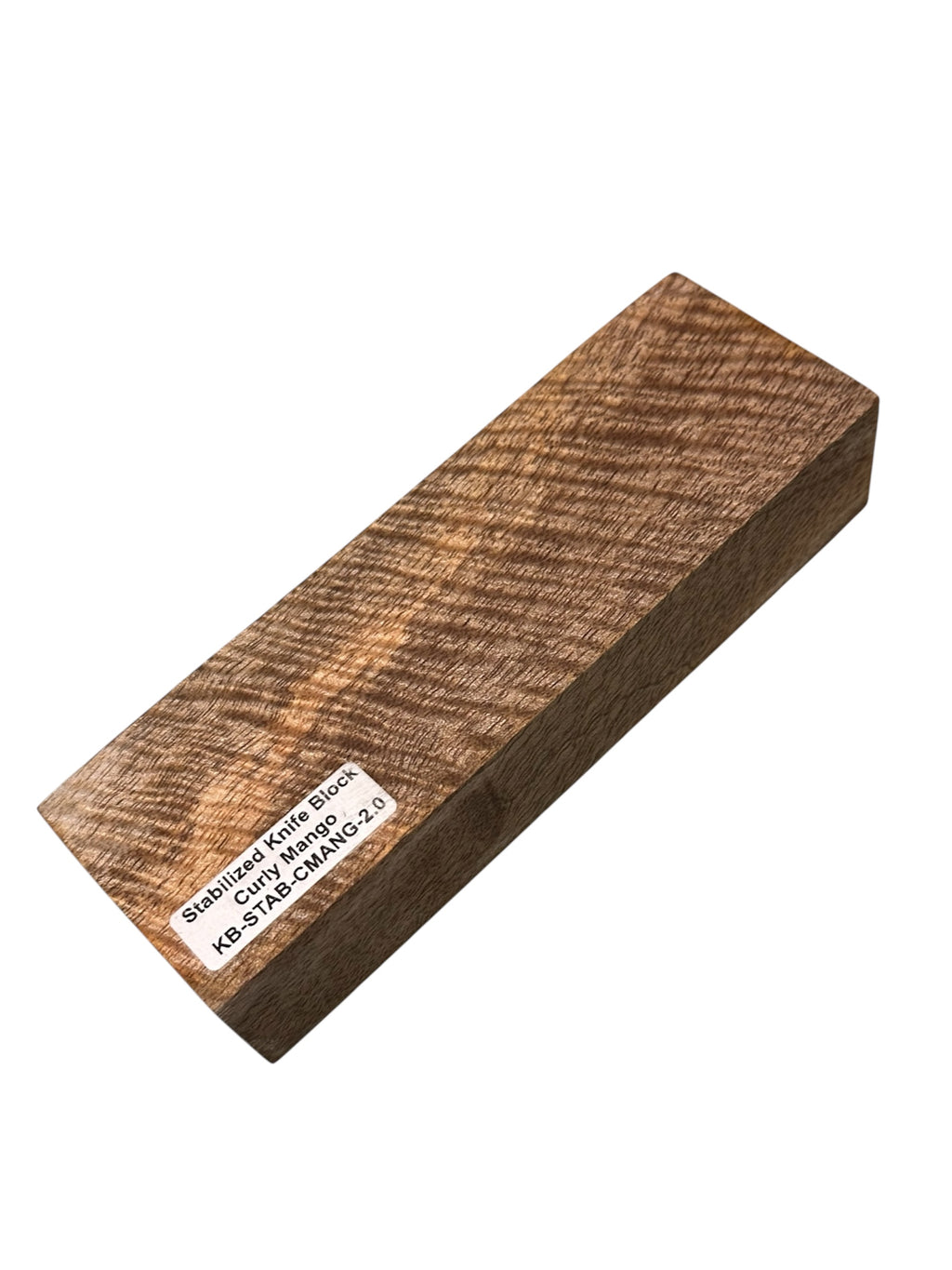 Stabilized Curly Mango knife block. Approximate blank size 5" x 2" x 1". Stabilization refers to impregnating soft wood with resin to strengthen the blank. Photo is a representative image; your blank will be selected at random and may differ from image shown. |